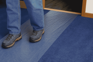 Clear Carpet Protection Film on blue carpeting
